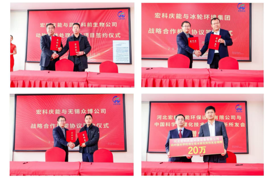 公司總工程師程逵煒先生與公司副總經(jīng)理趙東升先生分別就公司新產(chǎn)品進(jìn)行介紹,涉及到的新產(chǎn)品:車載天然氣液化設(shè)備、原油聯(lián)合站VOCs回收、天然氣處理廠尾氣處理、動物殘體處理&醫(yī)療廢物處理。特別值得一提的是,在會議現(xiàn)場,公司總經(jīng)理鄒鑫先生與陜西道橋建設(shè)公司簽訂了車載撬裝液化項(xiàng)目合作合同、與安東石油公司簽署角70井?dāng)U產(chǎn)裝置項(xiàng)目合作合同、與武漢科前生物公司簽訂動物殘體處理設(shè)備項(xiàng)目合作合同;與冰輪環(huán)境集團(tuán)、無錫眾博深冷工程有限公司簽署戰(zhàn)略合作框架協(xié)議,向中科院理化技術(shù)研究所所友會進(jìn)行捐贈儀式。這些合作將進(jìn)一步鞏固宏科慶能在行業(yè)內(nèi)的領(lǐng)先地位!