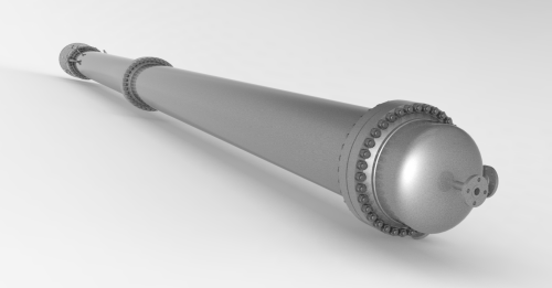 管殼式換熱器由殼體、管板、傳熱管束、擋板和管箱等部件組成。殼體大多圓筒形,內(nèi)部裝有平行管束,管束兩端固定于管板上。在設(shè)備內(nèi)進(jìn)行換熱的兩種流體,一種在管內(nèi)流動,稱為管程流體;另一種在管外流動,稱為殼程流體。為提高管外流體的傳熱分系數(shù),通常在殼體內(nèi)安裝特定數(shù)量的擋板。這種換熱器結(jié)構(gòu)簡單、造價低、流通截面較寬、易于清洗水垢:主要以金屬材料為主,能在高溫、高壓下使用,是應(yīng)用廣的類型。