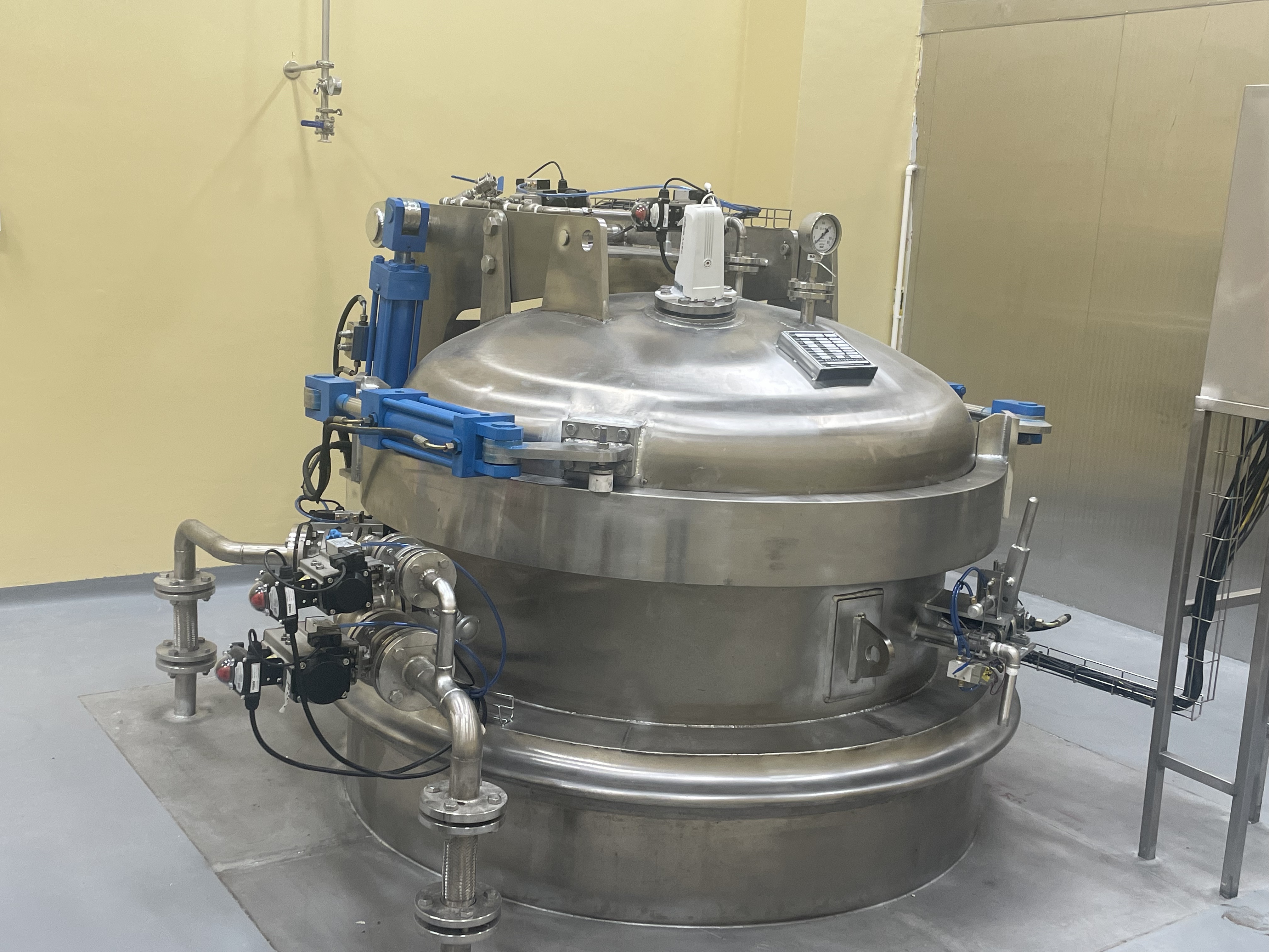 4月29日,項目迎來關(guān)鍵性環(huán)節(jié)——試車,從投料到處理完成,全程自動化運行,運行穩(wěn)定、順暢,完成了動物殘體無害化處理的全過程,包括升溫升壓、溫度保持、攪拌、減壓降溫、水分蒸發(fā)、加堿皂化等環(huán)節(jié)。下午18:00,隨著排料閥開啟,處理產(chǎn)物排出,處理產(chǎn)物達到了生物滅活和減量的目標,自行測試完全符合生物實驗室的處理要求,獲得業(yè)主的滿意,宣告系統(tǒng)一次性調(diào)試成功!對我司具有重大意義,正式進入生物安全核心裝備制造行業(yè)。
