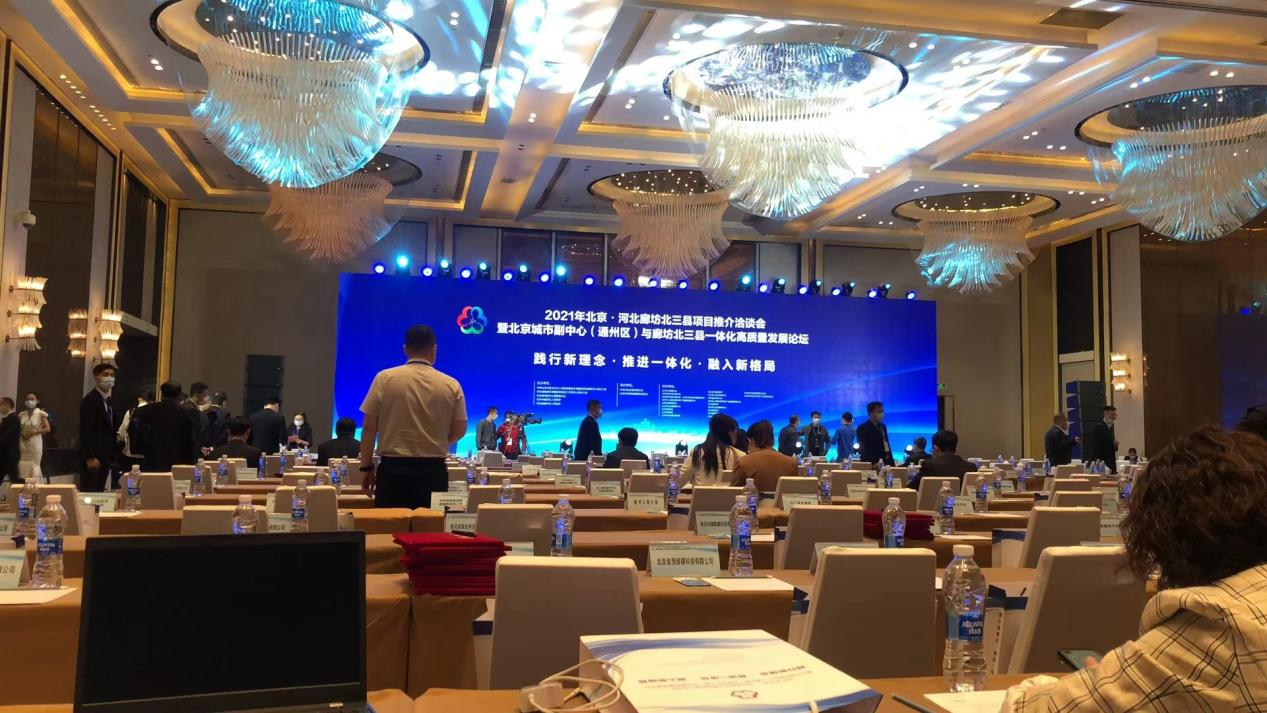 2021年5月13日上午,“2021年北京·河北廊坊北三縣項目推介洽談會暨北京城市副中心(通州區(qū))與廊坊北三縣一體化高質量發(fā)展論壇”在河北省廊坊市大廠潮白河喜來登酒店成功舉辦。本屆推介洽談會由北京市委市政府京津冀協同辦、河北省京津冀協同辦、北京城市副中心管委會(通州區(qū)人民政府)、河北省廊坊市人民政府共同主辦,兩地企業(yè)代表、媒體代表和相關社會組織共計300余人參會。