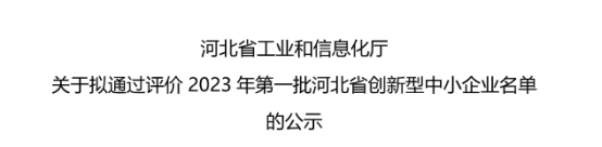 3月15日,河北省工業(yè)和信息化廳公示了“河北省2023年第一批創(chuàng)新型中小企業(yè)”名單。按照《河北省優(yōu)質(zhì)中小企業(yè)梯度培育管理實(shí)施細(xì)則》有關(guān)規(guī)定和《關(guān)于做好 2023 年優(yōu)質(zhì)中小企業(yè)信息更新和河北省創(chuàng)新型中小企業(yè)評價工作的通知》要求,市主管部門初審、省工業(yè)和信息化廳復(fù)審。河北宏科慶能環(huán)保設(shè)備有限公司被認(rèn)定為河北省2023年度“創(chuàng)新型中小企業(yè)”。這是我司在企業(yè)創(chuàng)新領(lǐng)域獲得的又一殊榮!