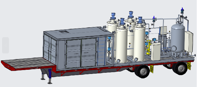目前,公司研發(fā)技術(shù)成熟的車載裝(可移動式)天然氣液化氣裝置,并成功運行生產(chǎn)。裝置采用撬裝結(jié)構(gòu),撬塊可在工廠制造、調(diào)試,再運往現(xiàn)場安裝,現(xiàn)場安裝時只需將相應(yīng)的管道、電源接上,聯(lián)合調(diào)試后即可投產(chǎn)。